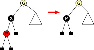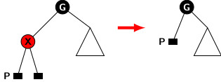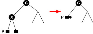 - If X is black and it has only one valid node Y as child, then Y must be red. Y replaces X and is recolored black.